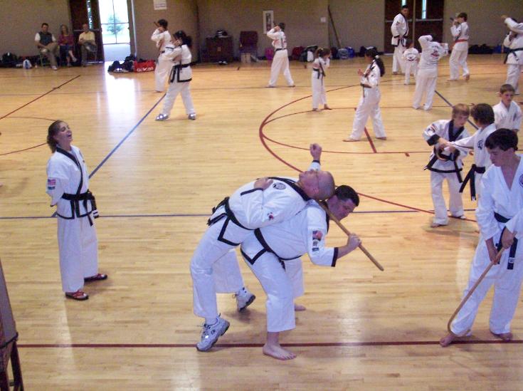 Tommy Strahan and David Miller, demonstrating cane self-defense techniques